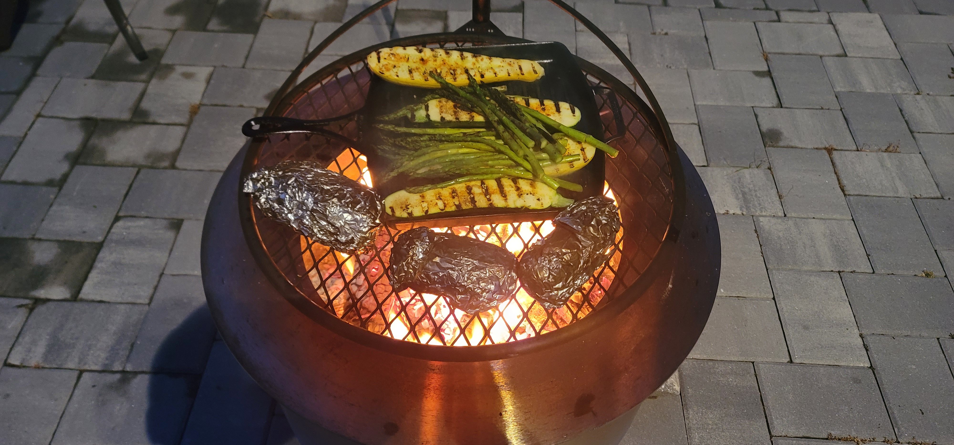 The wide, flat rim works well for resting cookware, and the pit maintains consistent heat for grilling or open-fire cooking. Whether it’s steaks, burgers, or cast-iron meals, the fire pit easily transitions from heat source to cooking station.
